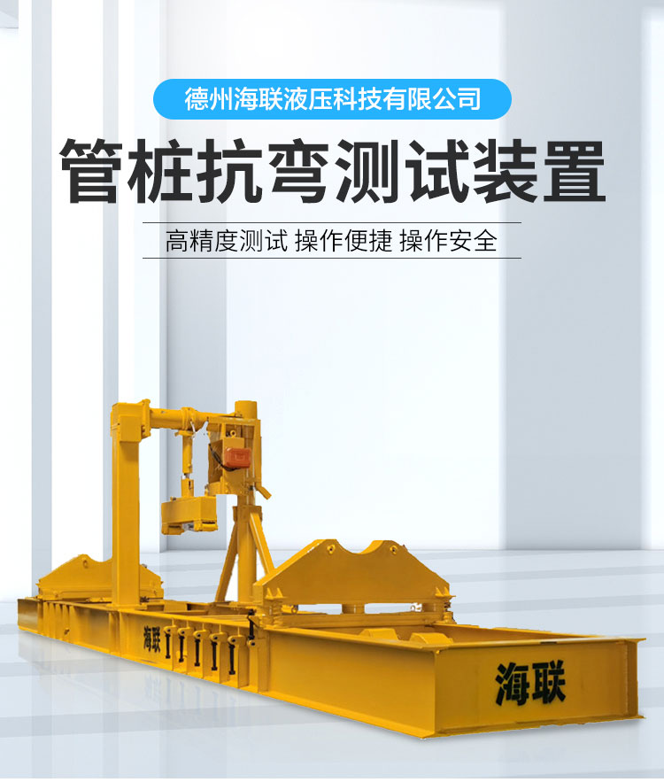 管樁抗彎測試平臺,是我公司應專家要求根據檢測規范設計創造的一款擁有自主知識產權的檢測設備,以規范為指導,以高精度測試、操作便捷、操作安全為出發點,設備結構設計巧妙合理,把機械原理、液壓原理和力矩測試融合,實現操作安全便捷,測試結果一目了然。