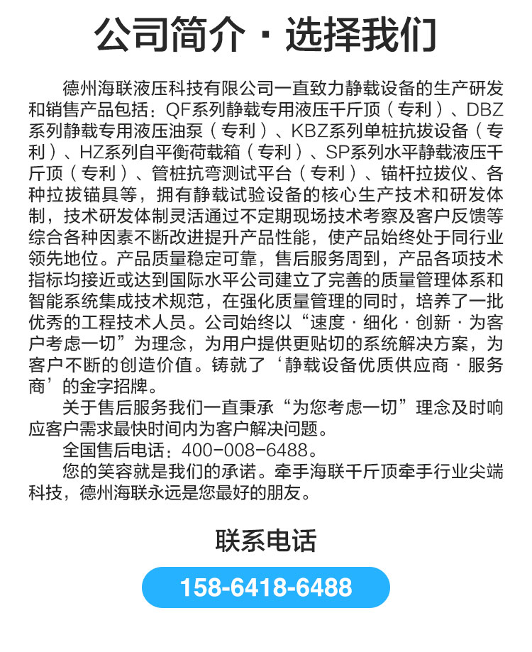 加壓系統:設備采用本公司靜載試驗千斤頂,配套靜載試驗油泵,壓力調節輕松易控。